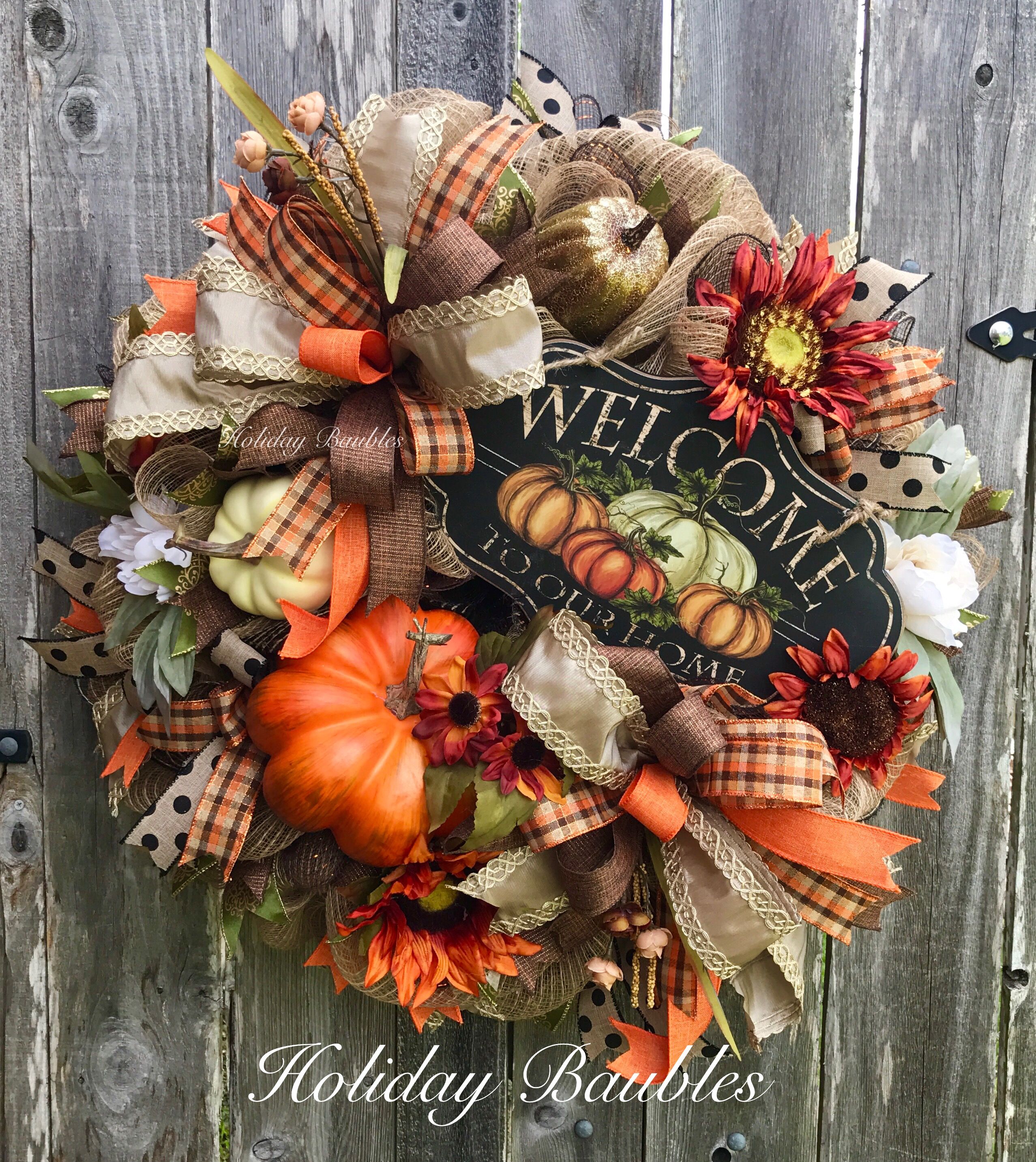 Fall Wreath Welcome To Our Home By Holiday Baubles Fall Thanksgiving Wreaths Fall Wreath Thanksgiving Wreaths
