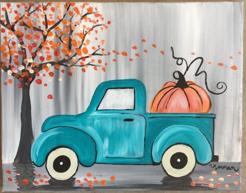 How To Paint A Vintage Pumpkin Truck Fall Canvas Painting Fall Canvas Easy Canvas Painting