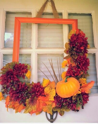 My Fall Wreath Dollar Tree Project Dollar Tree Flowers Picture Frame And Pumpkin Hot Glue Together Add A Bo Fall Decor Dollar Tree Fall Decor Diy Diy Fall