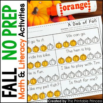 Fall Activities No Prep Pages Literacy And Math Activities For Kindergarten Kindergarten Math Activities Math Activities Fall Kindergarten Activities