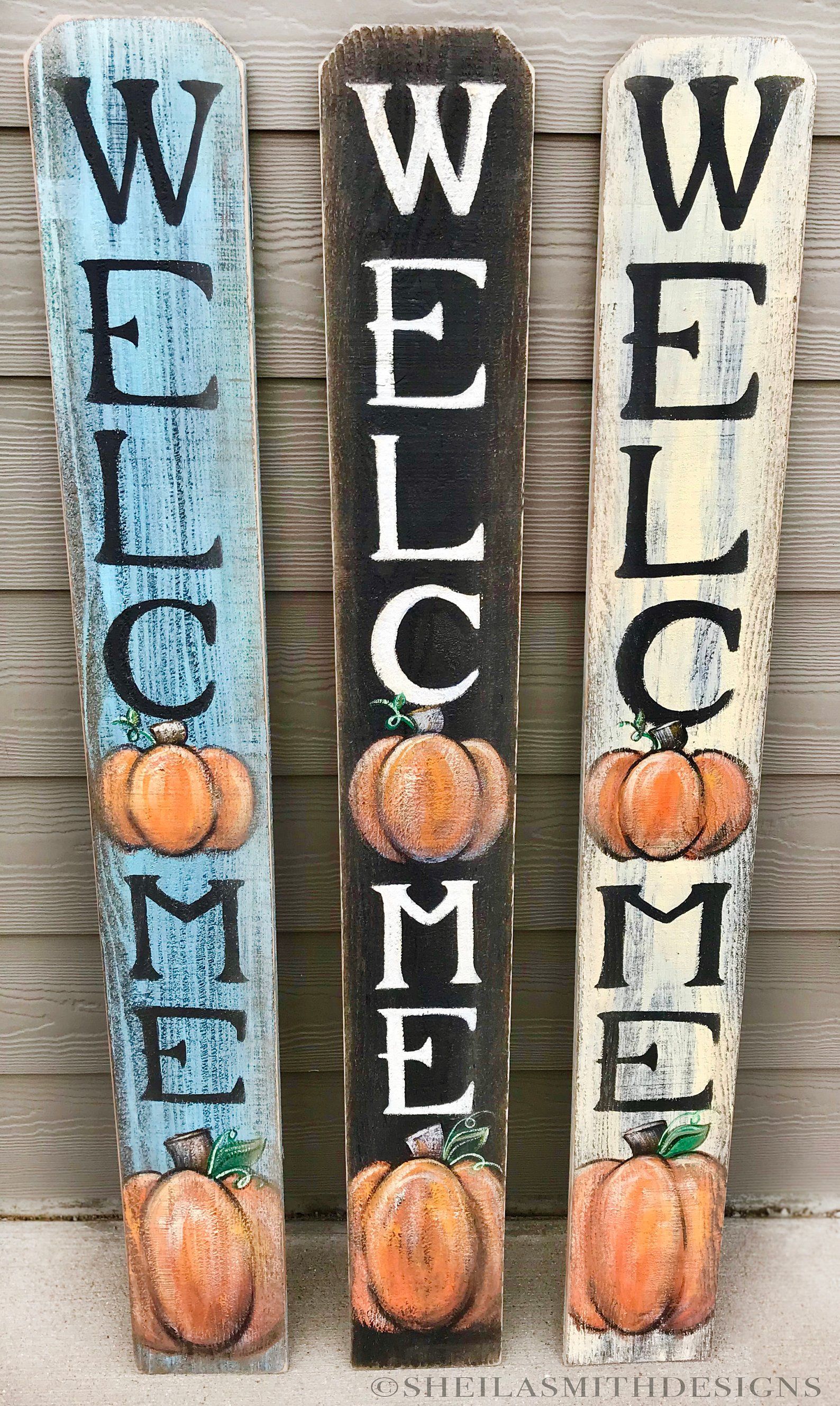 Welcome Sign Rustic Pumpkin Wood Welcome Sign Vertical Front Etsy Fall Wood Crafts Halloween Wood Crafts Fall Crafts