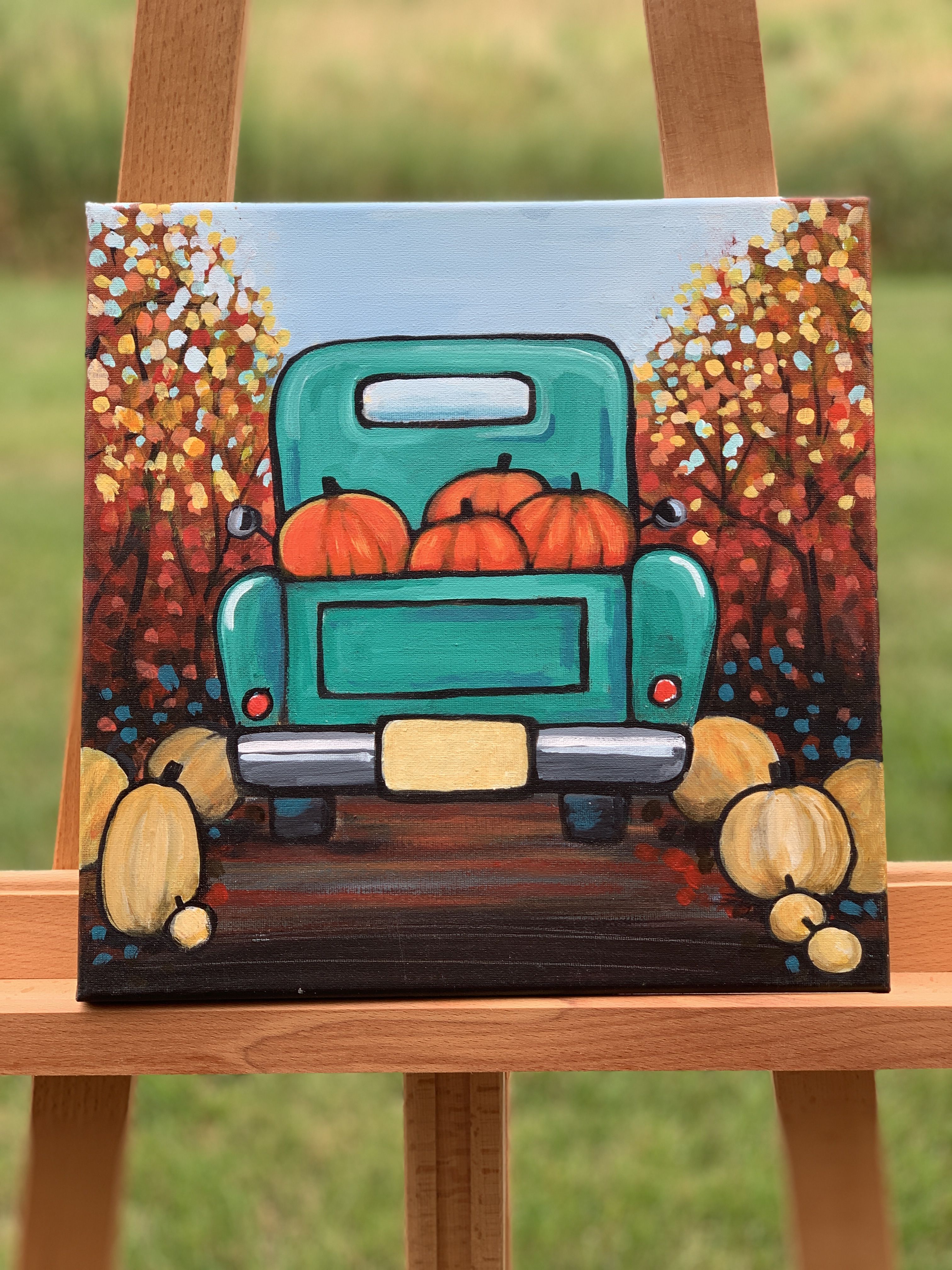 How To Paint A Vintage Pumpkin Truck Fall Canvas Painting Fall Canvas Easy Canvas Painting