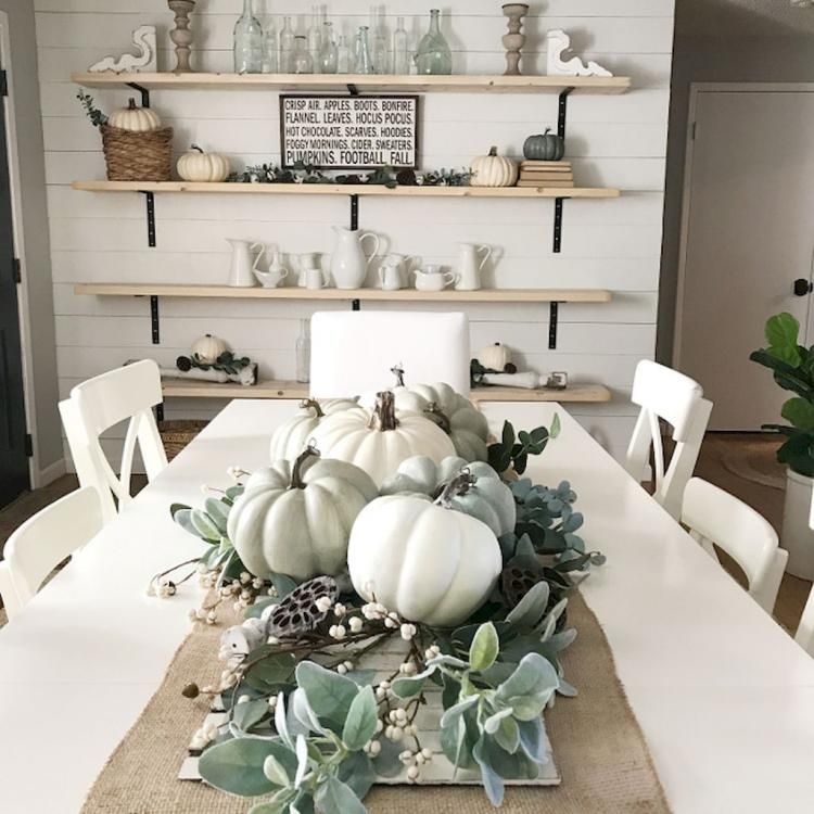 As expected in the fall pumpkins of every size shape and color make an appearance here. Thats all it takes to create the best dining room table centerpiece for your fall-themed home. Place a few plumes of pampas grass in a tall skinny vase to add a simple beachy vibe to the dining room.