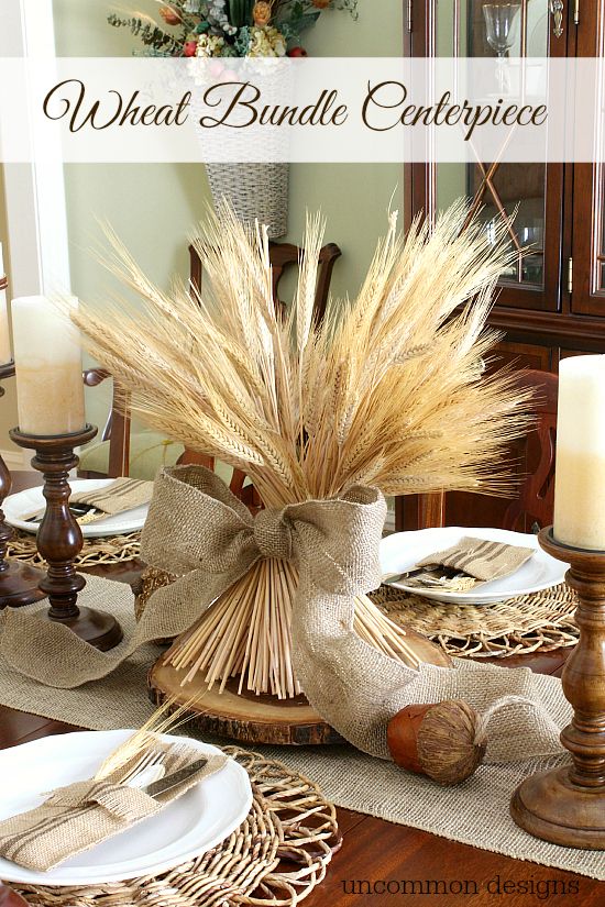How To Make Wheat Bundle Centerpiece Thanksgiving Table Decorations Thanksgiving Decorations Diy Thanksgiving Decorations
