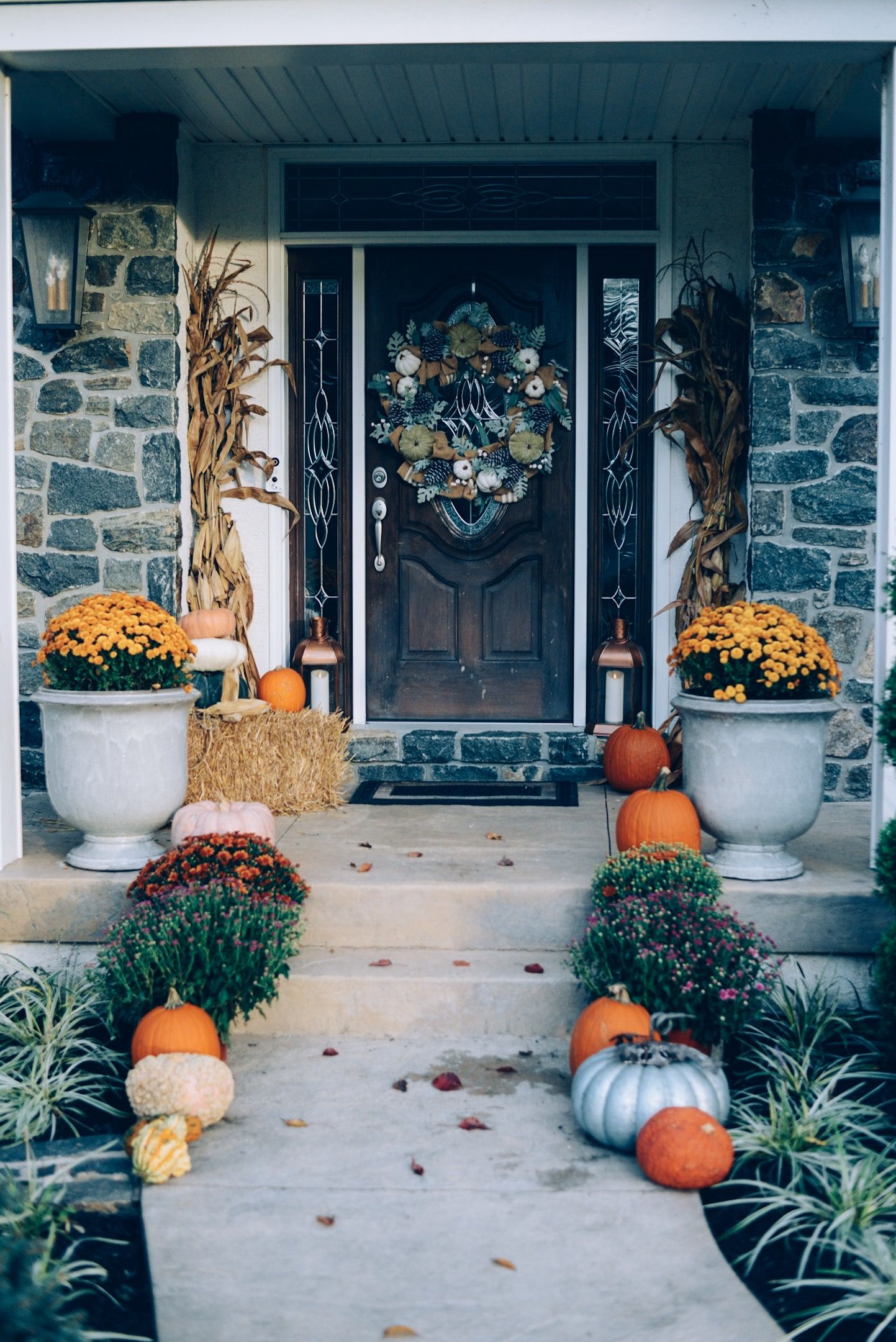 Jessica Pineda on Instagram. So this season give your house a gorgeous new front porch by adding a touch of Fall. In addition keeping with my autumn-inspired theme I added a bale of hay and some cornstalks each 4 at the local nursery.